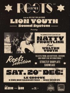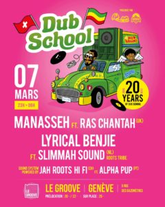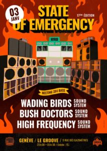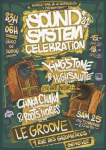Nous organisons des évènements avec des artistes locaux et internationaux, Live et Sound System. Basé à Chêne-Bourg de 2006 à 2019, puis au Groove (en centre-ville de Genève) depuis fin 2021.